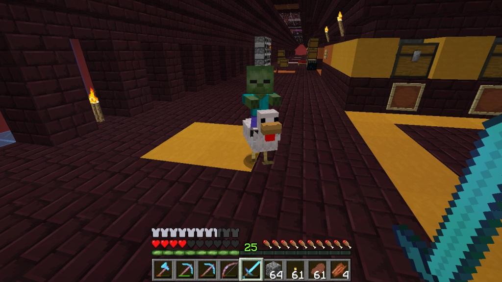 Valószínűleg lejutott egy csirke és kipurcant. Az állatok nem despawnolnak ha nem vagy a közelükben (mint az ellenséges mobok), hanem megmaradnak, csak nem mozognak. A netherkapun pedig minden át tud menni, nem csak a játékos: mobok, állatok (a szamarakat én vittem le), csille és még az átdobott item-ek is.