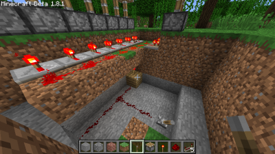 Ez egy elég rövid jelet ad le, nagyon jó pontossággal, és persze 4 repeaterrel lehet szabályozni a sebeséget, valamint ennek köszönhetően 4 különböző kimenete is van, és a középen lévő blokk tologatása egy fix késleltetést ad.
