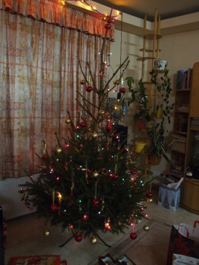 Nálunk úgy szokott lenni, hogy a család délután/este együtt feldíszíti és mivel a képek nem most készültek ezért ilyen kis csupaszka.