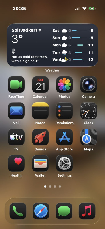 Mivel ugye a widgetek egymásra is helyezhetők és fel-le suhintással lehet köztük váltani, ezért a napi teendőkhöz a naptár és az emlékeztetők egy helyen vannak; alatta az időjárás és a levegőminőség szintén.