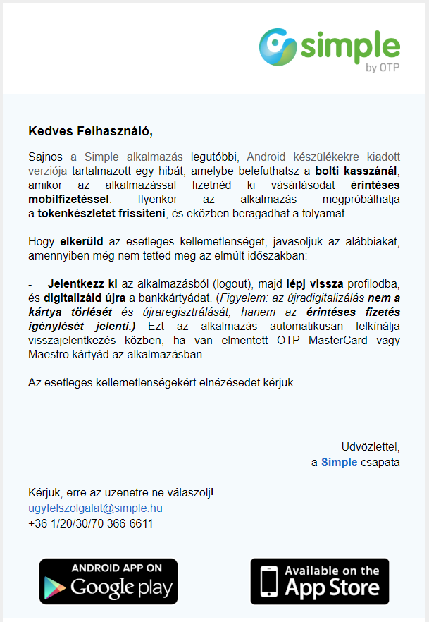 Ez a Simple olyan szinten egy köcsög app, hogy bekaphatja a létező összes faszomat. Mondom, kipróbálom újra, annak örömére, hogy újra van visszajelzés. Erre sípol a terminál és kiírja a telefon, hogy tokenek letöltése folyamatban és elkezdődik egy végtelen töltés...