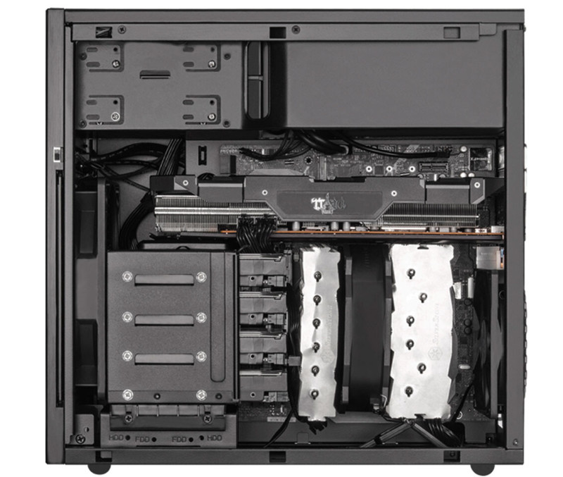 - mini itx alaplap vízszintesen az alján, némi hűtési lehetőséggel megspékelve.