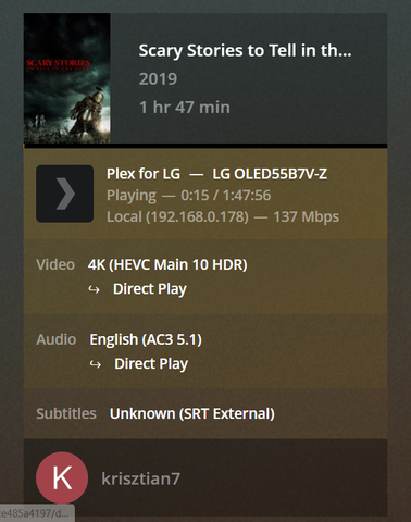 Egy sima mkv lejátszásnál (már több fimnél volt ilyen) kidob a tévén a plex, meg közvetlen a pc is.