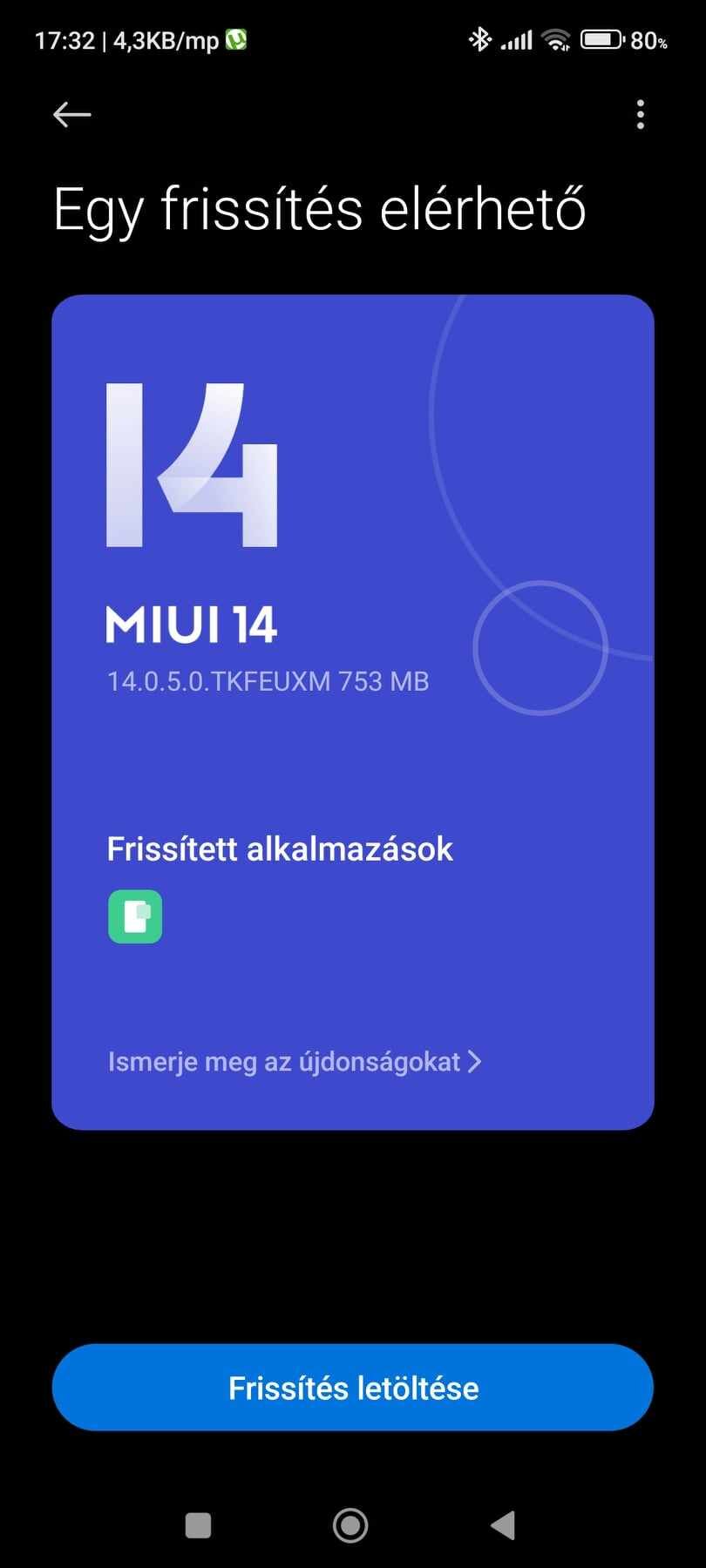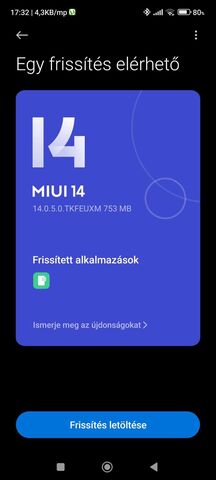Ezt követően letöltöttem a MIUI Downloader segítségével a jelenlegi 14.0.3-t és megpróbáltam fájlból kiválasztva azt újra feltenni (azaz itt nem a beépített frissítést használtam újra). Viszont ez sem ment!Ez alapján nekem olyan, mintha külső fájlból nem frissülne. Ez támpont lehet a megoldás keresésében?