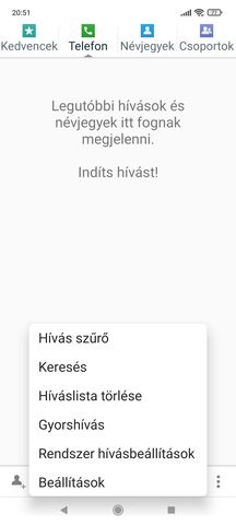 Belépsz a Tárcsázó vagy a Névjegyek be jobb oldalt alul a 3 pöttyre rányomsz megkeresed a "Beállítások" menü pontot.