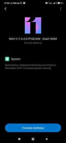 Az akkor jelenik meg ha a fenti 3 pontra kattintva kéri a legutóbbi frissítés letolteset, akkor kiirja a hosszabb listát, de attól függetlenül csak újra húzza a korábbi miui 11 et és a novemberi biztonsági frissítést.