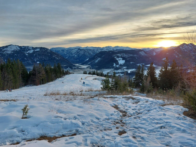 Megnéztük a templomot, volt egy kis szabadidő, felmentünk libegővel a közeli hegyre. Naplementekor. Kevés volt a fény, már ment le a havas hegyek mögött a nap. Uh, vagy 100 fotót lőttem a telefonnal, a hegyen, meg a ködös, kivilágított városban este.