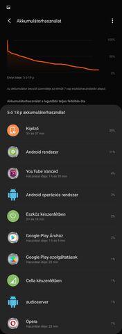 Nálam 2 nap készenlét mellett 8 óra kijelzős üzemidő jellemző úgy, hogy folyamatosan megy a 4G(+) és a bluetooth (okosóra kapcsolódva), de a számomra felesleges Google és Samsung folyamatokat kikapcsoltam, továbbá megválogatom a külsős alkalmazásokat. -