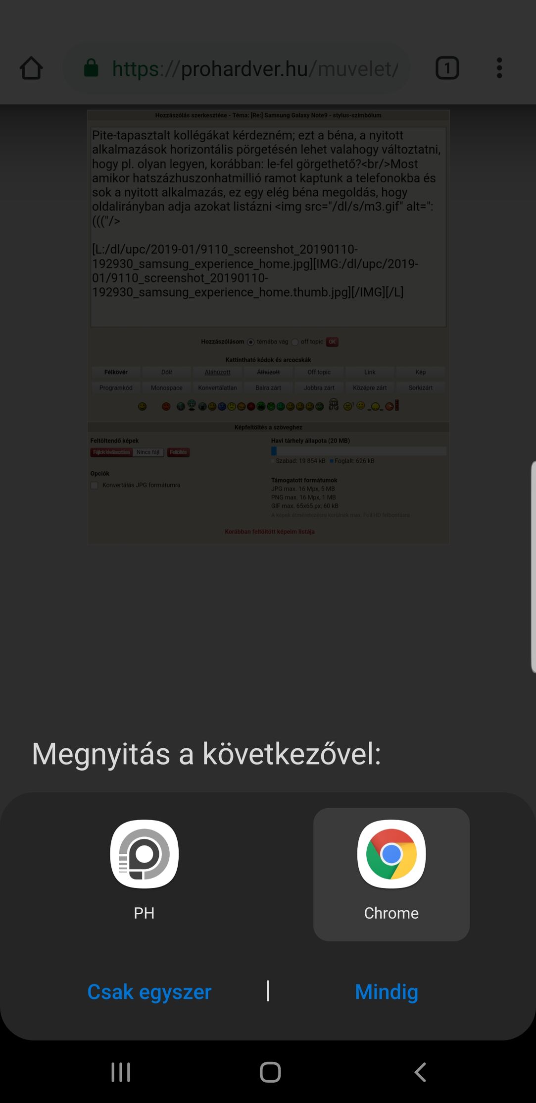 Most, kettőt mutat alapból és annyi... (pedig pillanatnyilag is már van 3 kompatibilis alkalmazásom az adott műveletre, melyeket használhatnám és melyeket fel kellene kínálnia; ph app, Chrome és Samsung böngésző).