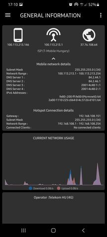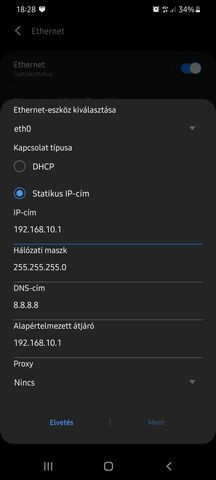 A hotspot hálózatára nem tudtam csatlakozni a teló LAN-járól. Sajnos akkor nem csináltam képernyő mentést, amikor a hotspot ment az Ethetnettel, de két hálózaton. A LAN-on persze nem volt net. Azután meg valamiért már be se tudtam kapcsolni az Ethetnetet a telón, csak DHCP-vel a routerre dugva.