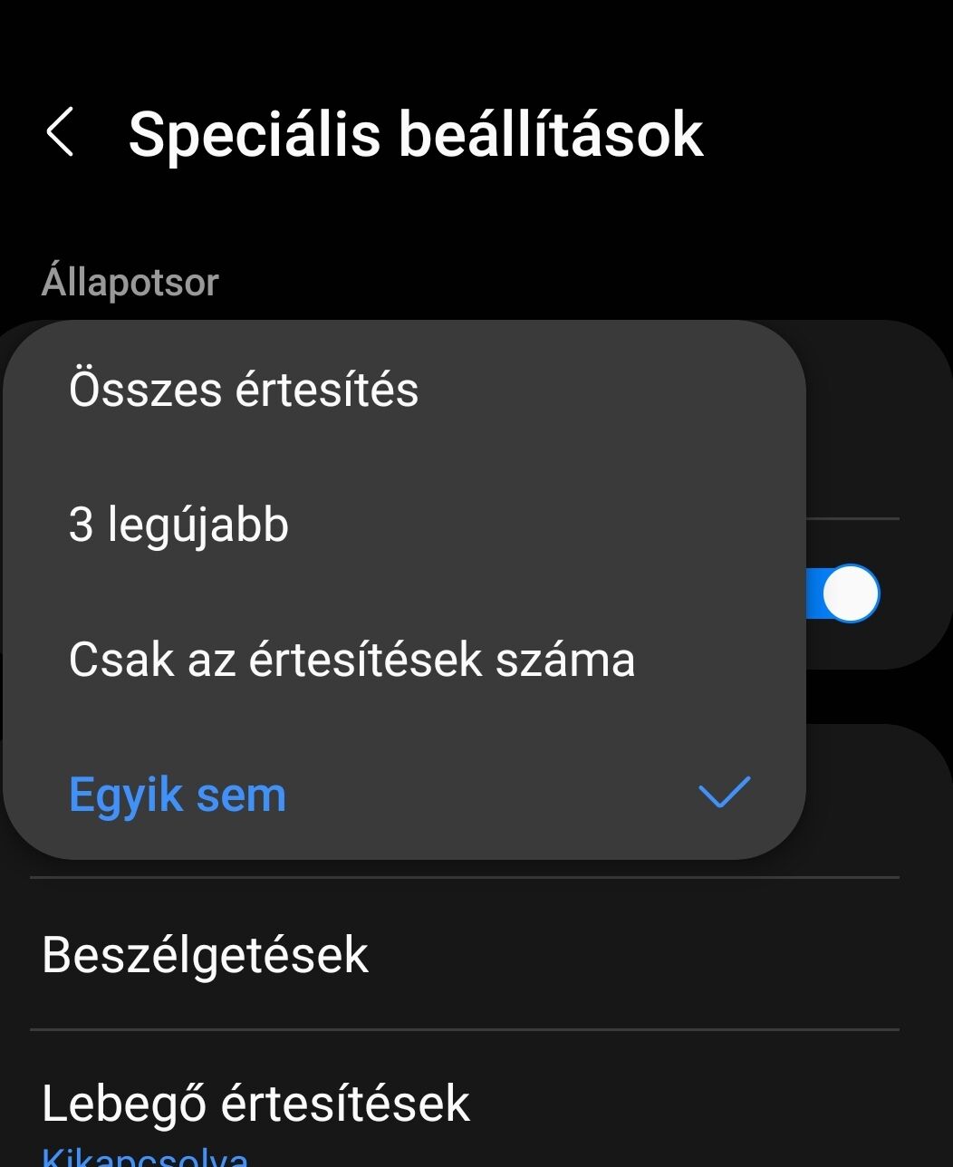 Én azt szeretném, ha bizonyos appok értesítései megjelennének a felső értesítési sorban (pl Gmail, Messenger) a többi, számomra kevésbé sürgős pedig ne csengjen-bongjon, riasszon a felső sorban, hanem csak magán az app ikonján jelenjen meg egy pötty, hogy jött valami - majd megnézném azokat, mikor ráérek. -
