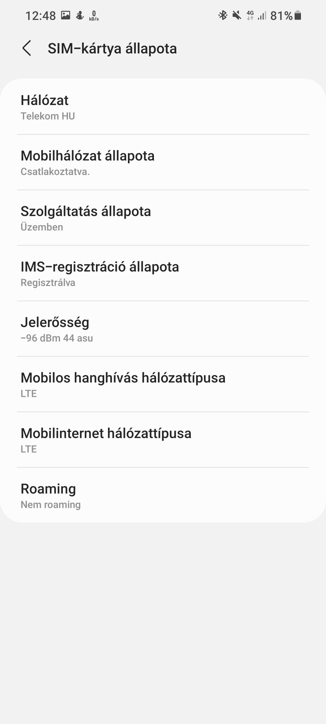 íÁttértem a saját kártyámmal is Telenorrol Telekomra előfizetésre. Így most már mindkét sim a Telekomon lóg. Ahol eddig tapasztaltam hálózatingadozást, (4g-ről 3g-re H-ra stb) az most eltünt. Viszont nincs VoLTE, pedig a szolgáltató szerint aktív a szolgáltatás. Nálatok se megy S21-el a VoLTE + Telekom kombináció?