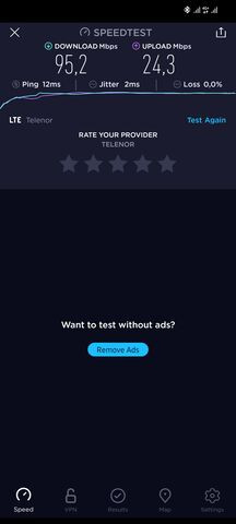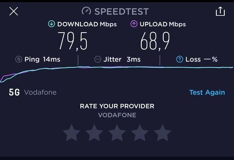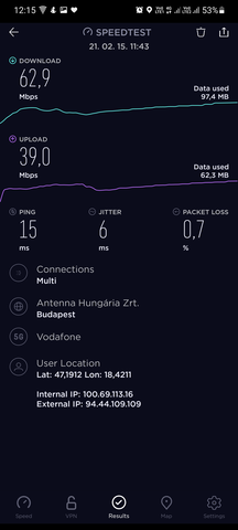 Most kapcsoltattam be vodánál az 5gt kb 100mbit a letöltés 4.ker Váci úton.