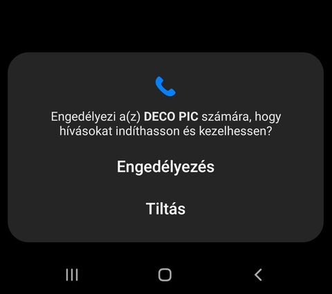 Telepítés után, amikor ismét bele akartam lépni, akkor közölte, hogy a Deco Pic használatához engedélyekre van szükség, rögtön elsőre fel is dobta, hogy engedélyezzem neki a hívások indítását és kezelését