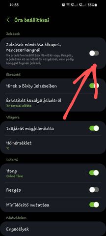 Akinek nem működik az ébresztés ha a "ne zavarjanak" be van kapcsolva (amit amúgy könnyen ki is lehet kapcsolni teljesen): keressétek a "ne zavarjanak" ikont az állapotsávban, tartsátok rajta az ujjatokat, majd a megnyíló menüben görgessetek az utolsó előtti ponthoz, "Jelzések és hangok", bökjetek rá, majd az ott megjelenő 5 opció és a hozzájuk tartozó kapcsoló közül mindenképp kapcsoljátok be az első, "Jelzések" nevű opciót.