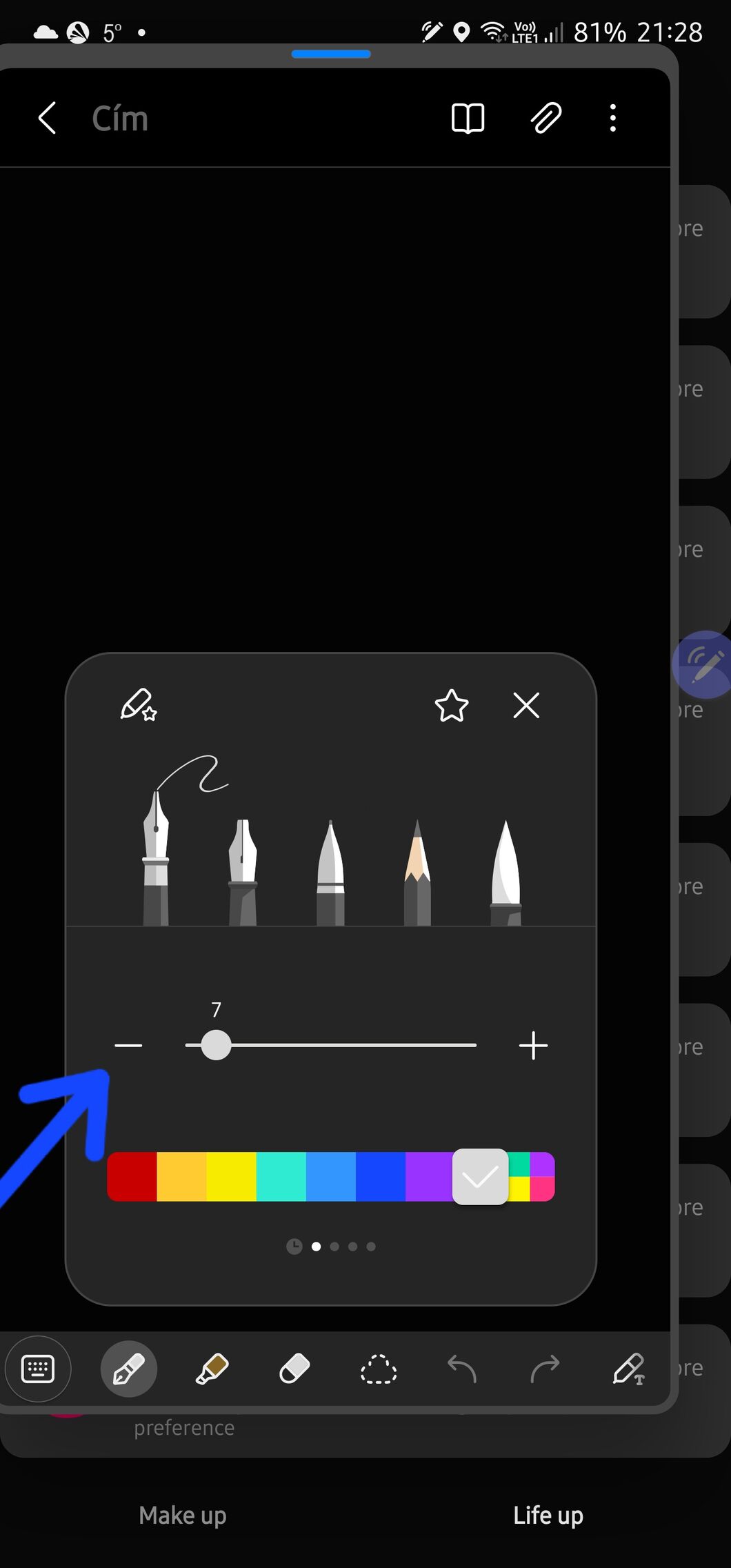 Hogy lehet változtatni a kézírásnál a toll méretét? Olyan vastagon ír, régebben ezt lehetett állítani.
