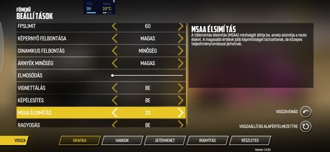 Játék Optimalizálás kikapcsolást követően elindult a játék.Maximálist megközelítő grafikai beállítások mellett nem hozza a stabil 60FPS-t, 35-50 között ugrál.
