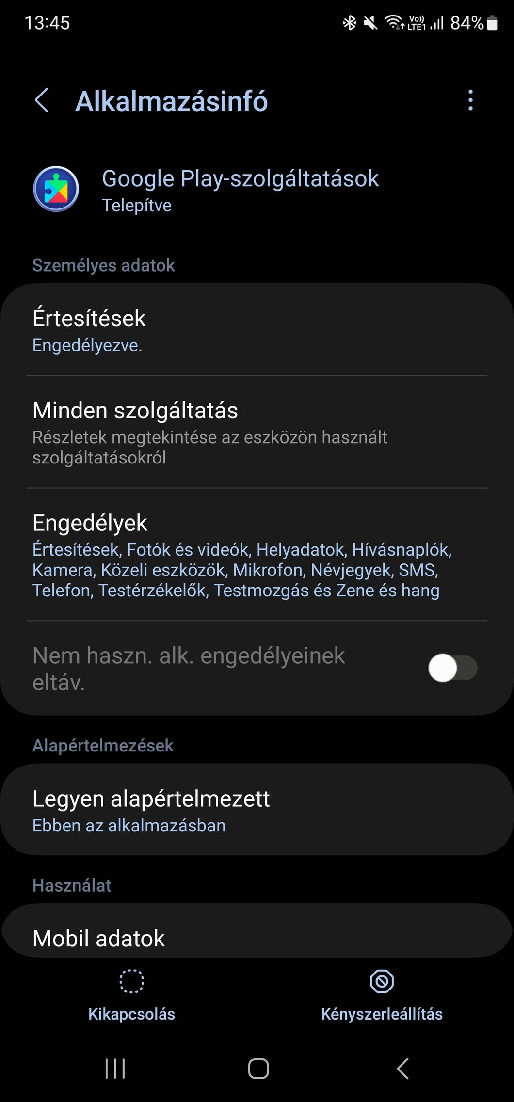 Hát erről beszéltem én is, sajnos komoly gyengeségei vannak a kamerának is, néha 1 mp mire fókuszt talál, képek mint egy festmény, szerencsére portré módban általában jó. Nem elfogadható hogy egy hat éves technika jobb legyen mint egy mai csúcs. Mitől fogyaszt többet egy mai csúcs hardver ha alapjáraton ketyeg? Optimalizálva töredékét kellene fogyasztania, hozzátenném kijelző méret alig nagyobb mint 6 éve és még csak nem is szebb vagy erősebb fényerejű átlag körülmények között. Szóval elég sok a telefon körül a gond. A lényeg viszont hogy a Google play services gyorsitótár törlés mellett elkezdtem egy csomó engedélyt megvonni tőle amit biztos hogy nem használok bixby pl. Emellett kikapcsoltam a Bluetooth és uwb-t a TAG-eket nem látja a telefon. A tegnapi 37% os merülés helyett most 15% lett nulla használat mellett tehát vsz a Google play services lesz az akku fogyás oka.