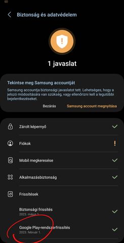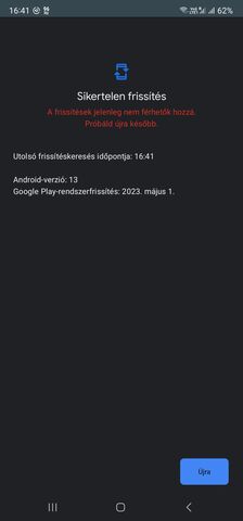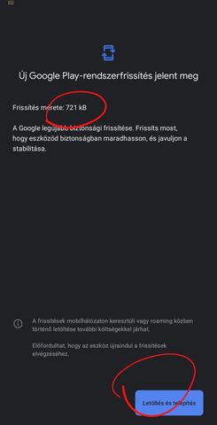 ui.: az "új Google Play-rendszerfrissítés jelent meg" üzenet továbbra is ott ál, frissítés mérete: 48MB és ugyanúgy látszólag letölti, telepíti, újraindul, de nem történik meg és továbbra is 2023. február 1. dátum szerepel a neve mellett.
