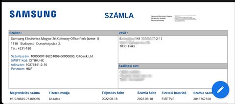 Köszönjük, hogy bizalmaddal megtisztelted a Samsung webshopját, mellékelten küldjük a megrendelésedhez tartozó számlát."