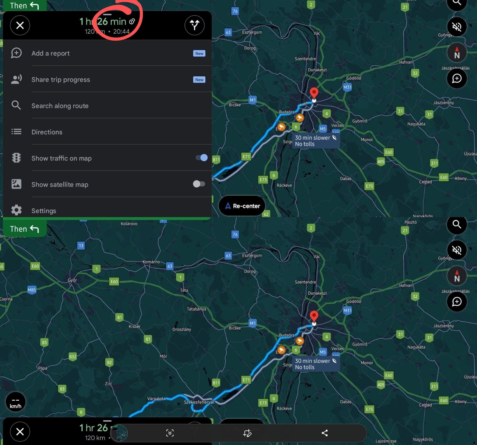 Ha Google Maps-be beállítotok egy navigációt, és fekvő módba fordítjátok, akkor ez a bal oldali információs sáv eltűntethető? [kép]