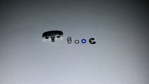 Szóval, a felső képen a nyomógomb háza, az alsó képen pedig az látszik, hogyan van felépítve a gombszerkezet. Lényegében a gomb szárán elhelyezett rugó nyomja a kék színű szilikongyűrűt a készülékház falához, amiben nyomásra csúszkál a gomb szára. A rugó ellenállása érezető a gomb megnyomásakor is. Namármost nem kell műszaki zseninek lenni ahhoz, hogy rájöjjön az ember arra, ez a felépítés "tiszta" körülmények közt nem hogy 5ATM víznyomást nyomást nem tud visszatartani, de a gombház kialakítása miatt ottragadt nedvesség a következő gombnyomáskor szintén jelen lesz. Ugyanakkor még nem említettem a gomb alá bejutó és lerakódó szennyeződések amik megtartják a nedvességet a parányi szilikongyűrű köré, gombnyomáskor akár mögé kerülve simán a készülékházba jut, ugyanis a gomb szára enyhén lötyög a készülékház gombfuratában.