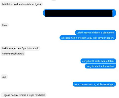 A lengyel központból, céges hálózaton keresztül fertőzödtek meg, 4 nap alatt tudták kipucolni a hálózatot...ez július elején volt...