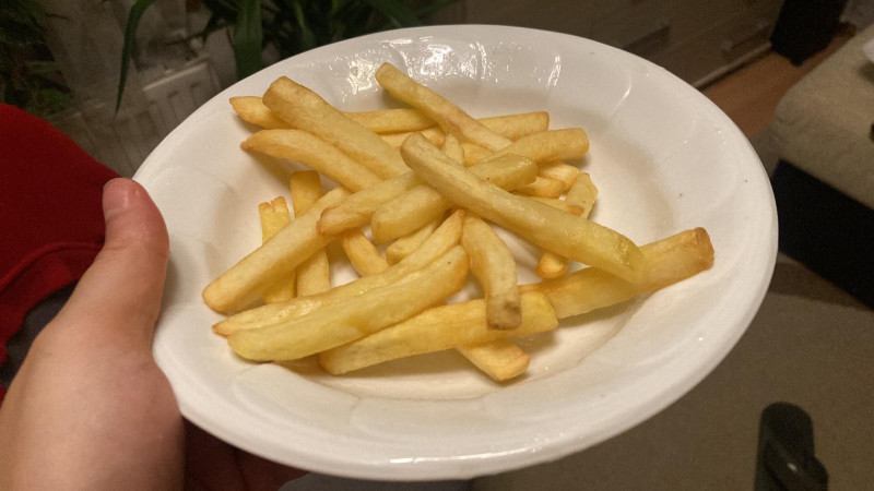 Első kísérlet sültburgonya gyári beállításokon 180 fok 18 perc.