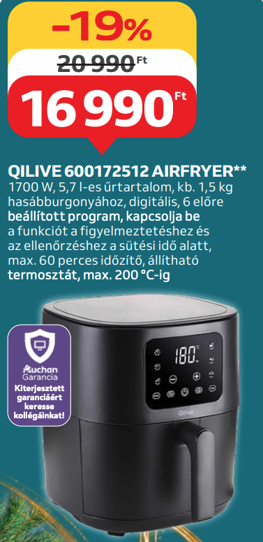 Új versenyző az Auchannál az alsó kategóriában: https://auchan.hu/shop/qilive-600172512-air-fryer-57-l.p-866952 (lehet persze, hogy régebbi modell, de most barátságosabb az ára).