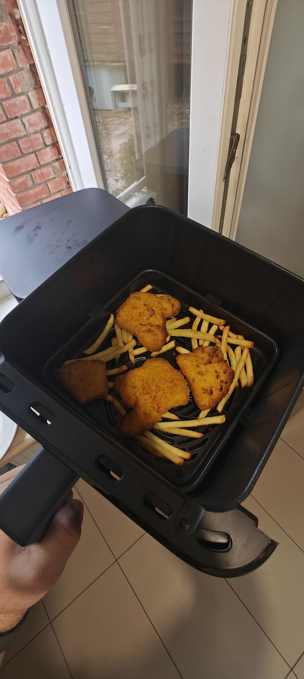 csak ez szimpi volt, hogy nem túl széles, viszont kellene a két külön kosár a húsnak meg a köretnek, hogy teljesen más hőfokon lehessen sütni.