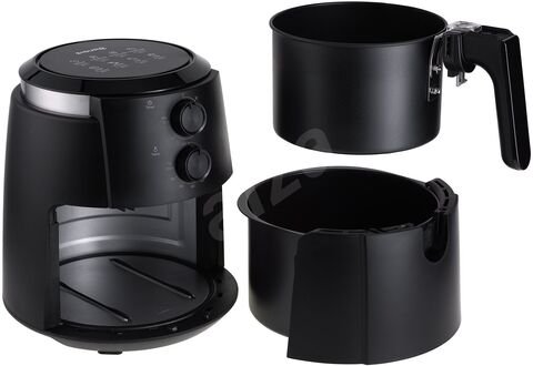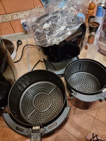 Kisebb (a magkrumplinál alig nagyobb) krumplikat megmosva, majd (mérettől függően) héjastól félbe vagy negyedbe vágva, kb. 5-6 percig előfőzöm. Utána a vizet leöntöm, sózom és tetszés szerint fűszerezem, kis olaj, összerázom, és megy bele az air fryerbe. Egyszerre annyit szoktam sütni, hogy négy felnőtt nem bírja megenni, ez a mennyiség kb. 22-24 perc alatt sül meg egyszeri átrázással, 180-190 fokon. Nekünk jobban bejön, mint a hagyományos vékony sültkrumpli. -