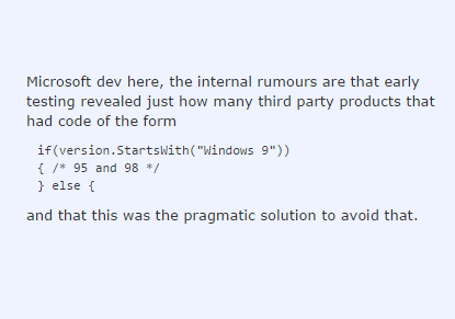 (amúgy szerintem is csak egy poén utalva a sajtótájékoztatón elhangzott indokra, miért nem win9 lett) -