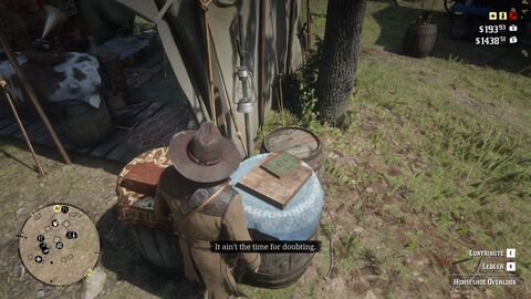 A táborfejlesztéshez meg meg kell csinálni az első 3 pénzbehajtós küldetést (Money Lending and other Sins I/II