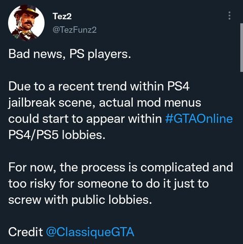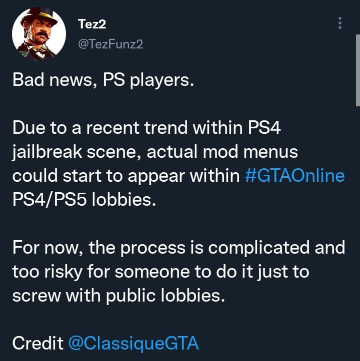 lofagi: Tez2 írta, hogy a #SaveRedDeadOnline felírat benne van a legnépszerűbb modmenükben is