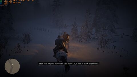 A story módban, a ló is követi a vonatot, azaz a vonatról leszállva, mindig kéznél volt, de itt nem így történt. A táborba visszagyalogoltam (jó negyed óra volt