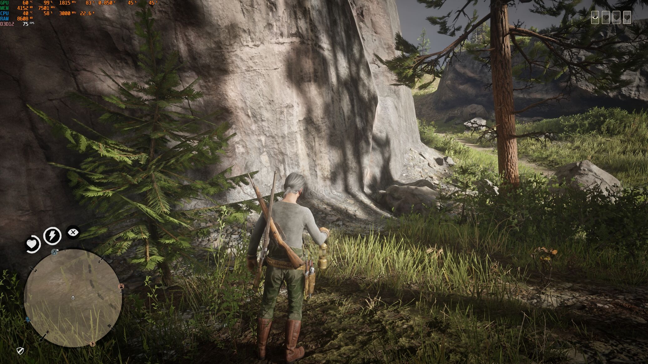 A grafikát hagytam úgy, ahogy a játék belőtte, általában hight, és medium, és így átlagban 75-80 körüli fps van. Az első küldetésnél, ahol a szakadó hóban kellett lovagolni, ott volt eddig a legalacsonyabb az fps, azon részen inkább a 60-hoz volt közelebb jellemzően.