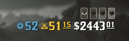 Nem feltétlen kell pénzszűkében kínlódni, és emiatt pár dollárt érő szirszar bőrökért vadászgatni, hanem gyűjts be az aranyrudakat, és darabját add el 500 dollárért. Ez alapján [link] én is begyűjtöttem mindet, egy helyszín kivételével, már a második fejezetben elérhető az összes, így nekem is az elején lévő alig pár száz dollár helyett lett is mindjárt több mint nyolcezer. Onnantól kezdve, akár az egész térképet kiírthatod, vagy a vonatokat, postakocsikat kirabolhatod, lesz pénzed lóvéra, a 100-200 dolláros vérdíjjakat is simán kiperkálhatod.