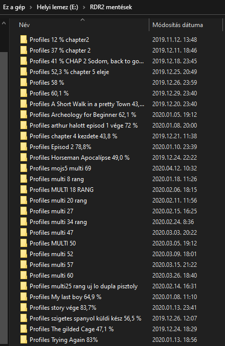 Elvileg az online mentés a felhőbe megy, ha a beállításoknál nincs kilőve, akkor egy játék újratelepítés után, ott kellene folytatni, mint a telepítés előtt. A story mód viszont az elejére dob újratelepítésnél, ekkor jönnek jól, a kimentett állások. Nálam így néznek ki a korábbi mentéseim, innen elvileg bármelyik állást vissza tudnám tölteni, de még nem volt rá szükségem, szerencsére.