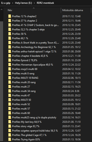 Egyébként én azt szoktam csinálni, hogy egy adott játékállást tarlamazó mappát átmásolom egy másik, külön lemezre, ideiglenesen átnevezem az adott mappát úgy, hogy a mappa neve tartalmazza a befejezett küldetés címét, meg épp hány százalékon állok a játékban. Ezzel bármilyen korábbi állást vissza tudok tölteni.