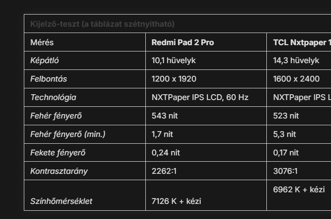 A táblázatban el van írva a Redmi Pad 2 Pro specifikációja, elég durván, légyszi javítsátok: