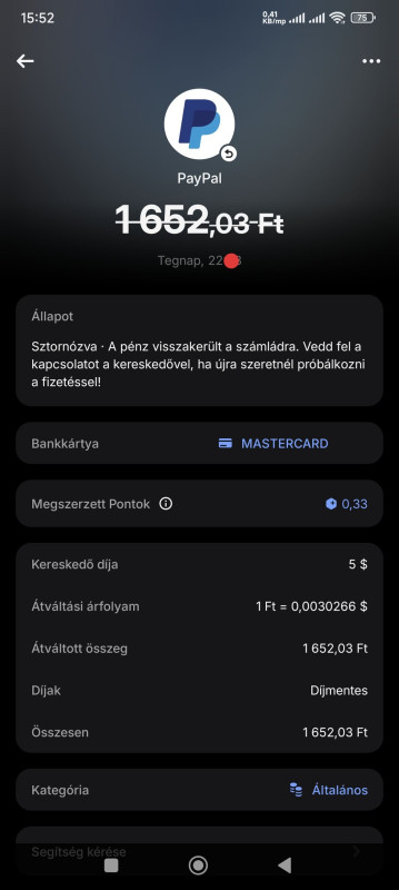 A revo (vagy paypal?!) azonban sztornozta az összeget kb 25 perccel később. Tudja valaki mit nem csináltam jol?