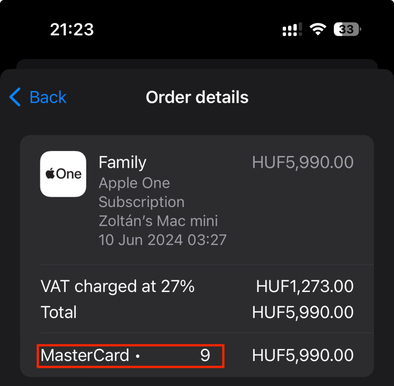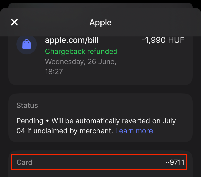 Végignyálaztam a tranzakciókat. Amit lepróbált vonni azok régi előfizetési díjak. (2023) Plusz egy App Store vásárlás amire refund-ot kértem. Tehát itt az Apple hibázott. A 9711 kártyával ezeket fizettem is párszor. (Aztán törlésre került.) Így már érthető miért tudta levonni.