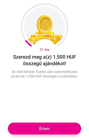 Kollégámnak küldtem meghívót a múlt hét előtt, tegnap meg is jött a kártyája. Én megkaptam az 1500 forint "bónuszt", de ő még mindig nem. Tegnap volt 2-3 vásárlása a fizikai (Spar, Lidl stb.), és 3-4 vásárlása a létrehozott virtuális kártyájával (Aliexpress).