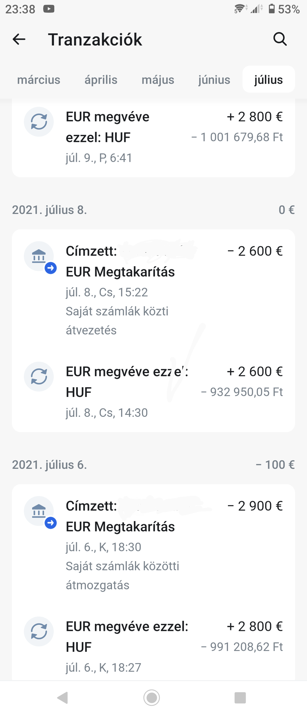 Én a nyáron egy családtag eur vásárlástól megsegítve napi 2-3k eurt váltottam és utaltam ki, sima ügy.