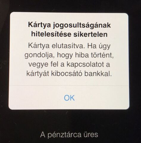 "Kártya jogosultságának ellenőrzése sikertelen") -