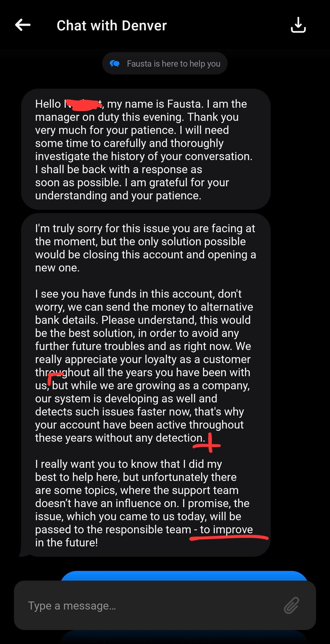 Érdekességképpen, megmutatom az utolsó és az utolsó előtti ügyintéző/managerrel folytatott beszélgetést, annak végeredményét, természetesen a neveket, számokat igyekeztem kihúzni (az övék pedig úgyis kamu nevek).