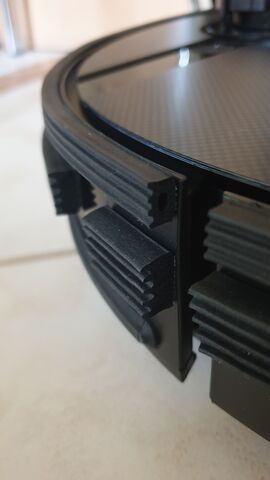 A kefe már nehezebb eset. Egyszerűen cserélhető benne a kefecsíkok, de még nem találtam megfelelő talpszélességűt amit be lehetne fűzni/húzni.Viszont nálam a kis üvegasztal lábánál lévő kiálló fém díszítés pont 5 cm magasságban van, amit épp nem lát és szépen végigkarcolja az oldalát, amikor elfordul. Erre megoldás a 500 forintos nyilászáró szigetelés. Fehérben és feketében is kapni. Közelről nem éppen szép, de hasznos.
