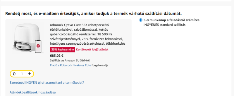A chatgpt azt javasolta, hogy Roborock Q Revo MaxV legyen. Azt mondta az felső-közép gép, kb 250k.