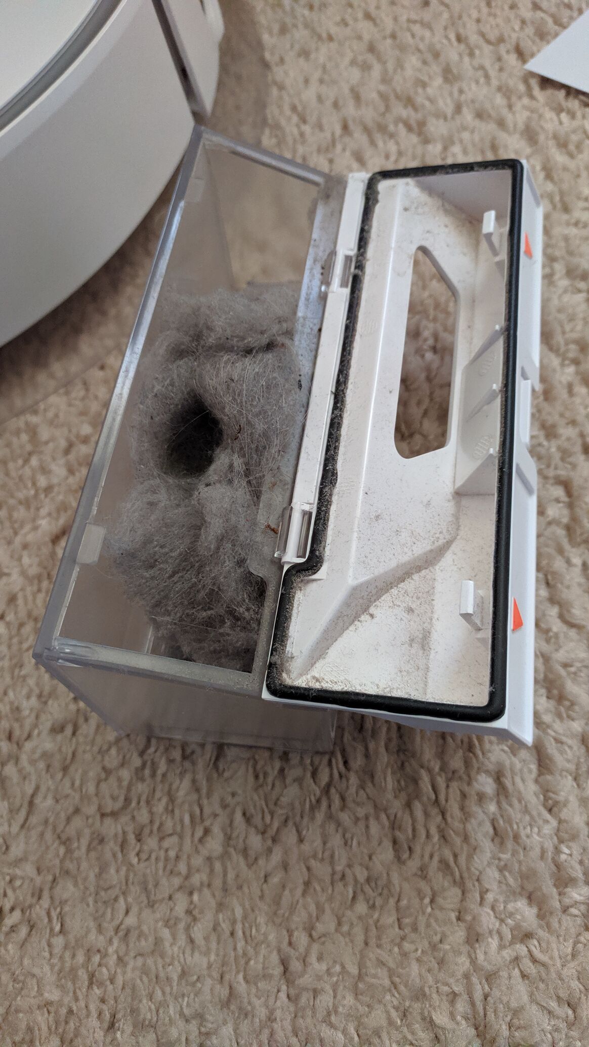 (Roborock S50) beüzemelése óta! Nálunk minden hétköznap megy, hétfő-szerda-péntek teljes takarítás, kedd-csütörtök csak a frekventáltabb helyeken (előszoba, konyha) van tisztítás elrendelve! Majdnem 4000m2 a teljes takarítás eddig, és egyszerűen hihetetlen, hogy hetente mennyi kosz gyűlik össze a portartályban. Péntekenként van "karbantartás", amikor a portartály ürítésre, a többi rész pedig áttörlésre/megtisztításra kerül. Mondhatom, nagyon szeretjük, Albert családunk megbecsült tagja!
