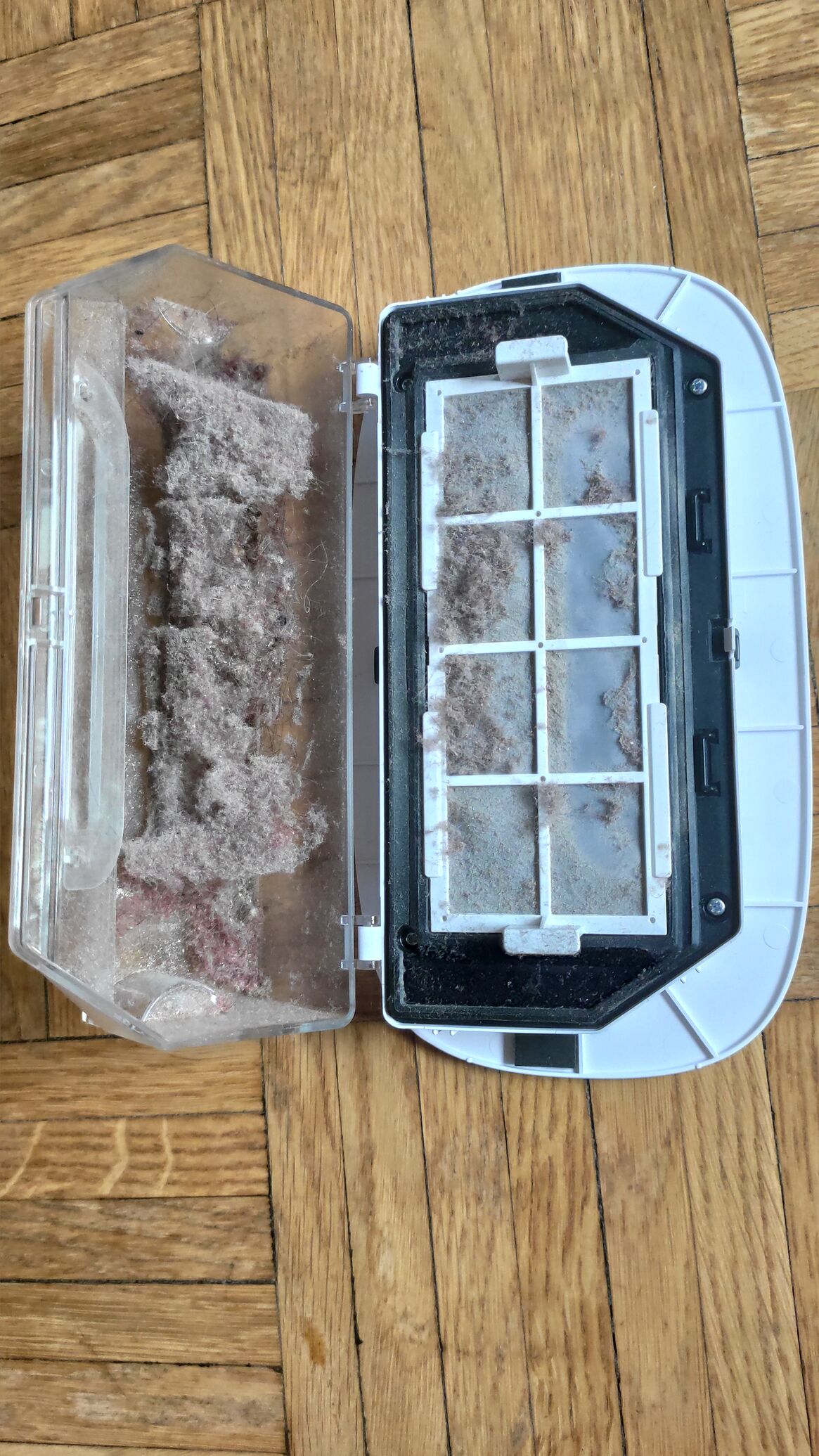Ja! Tegnap 16h körül alaposan felporszívóztam, de közepes fokozaton elég sok mindent összeszedett utánam. Pont annyit, mint ma, másnap délelőtt a két porszívózás után és csak a legkisebb fokozaton...